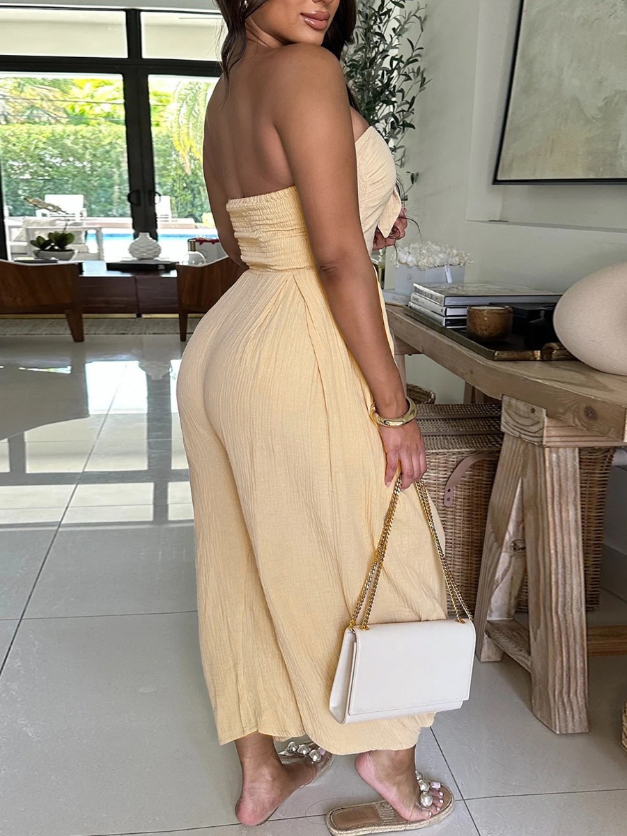Bandage Strapless Solid Colour Jumpsuit
