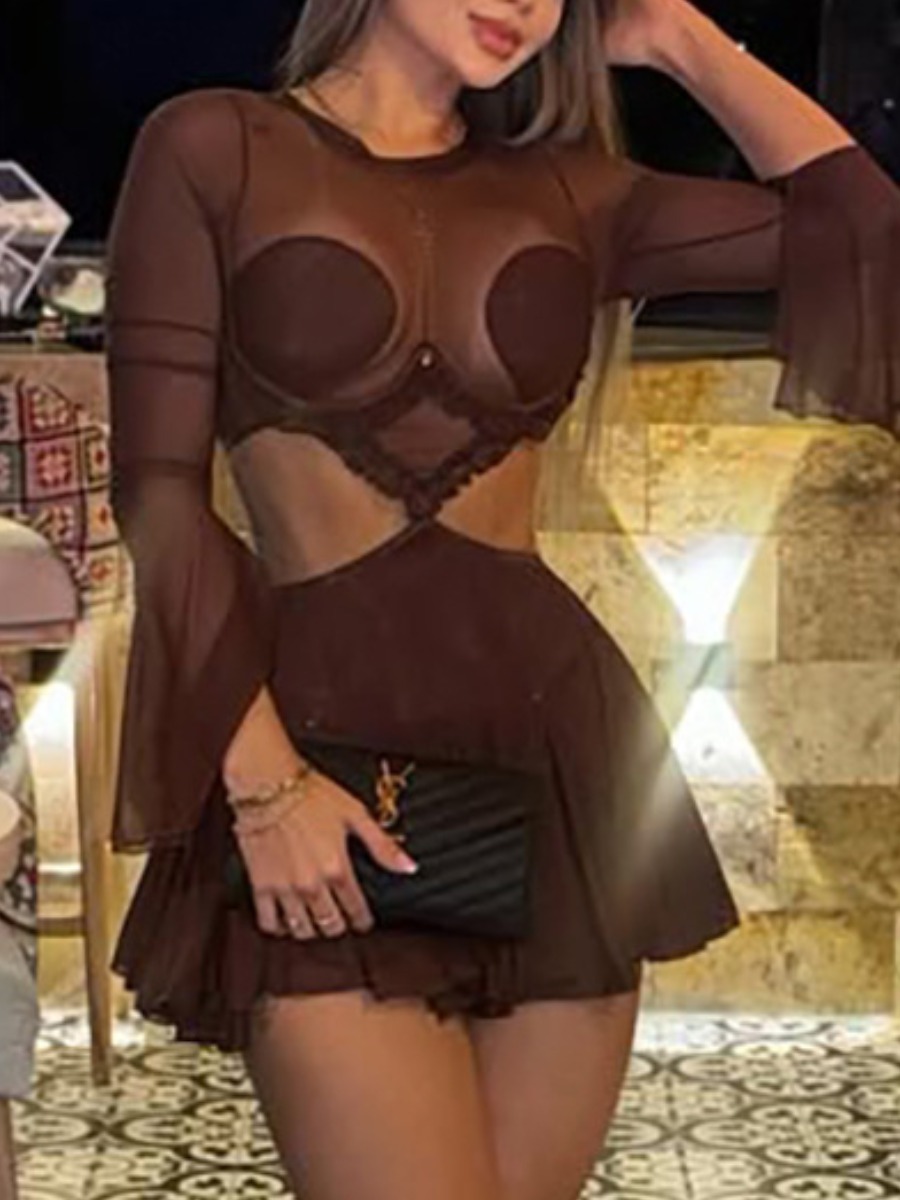 Brown Cut Out Patchwork Mini Dress