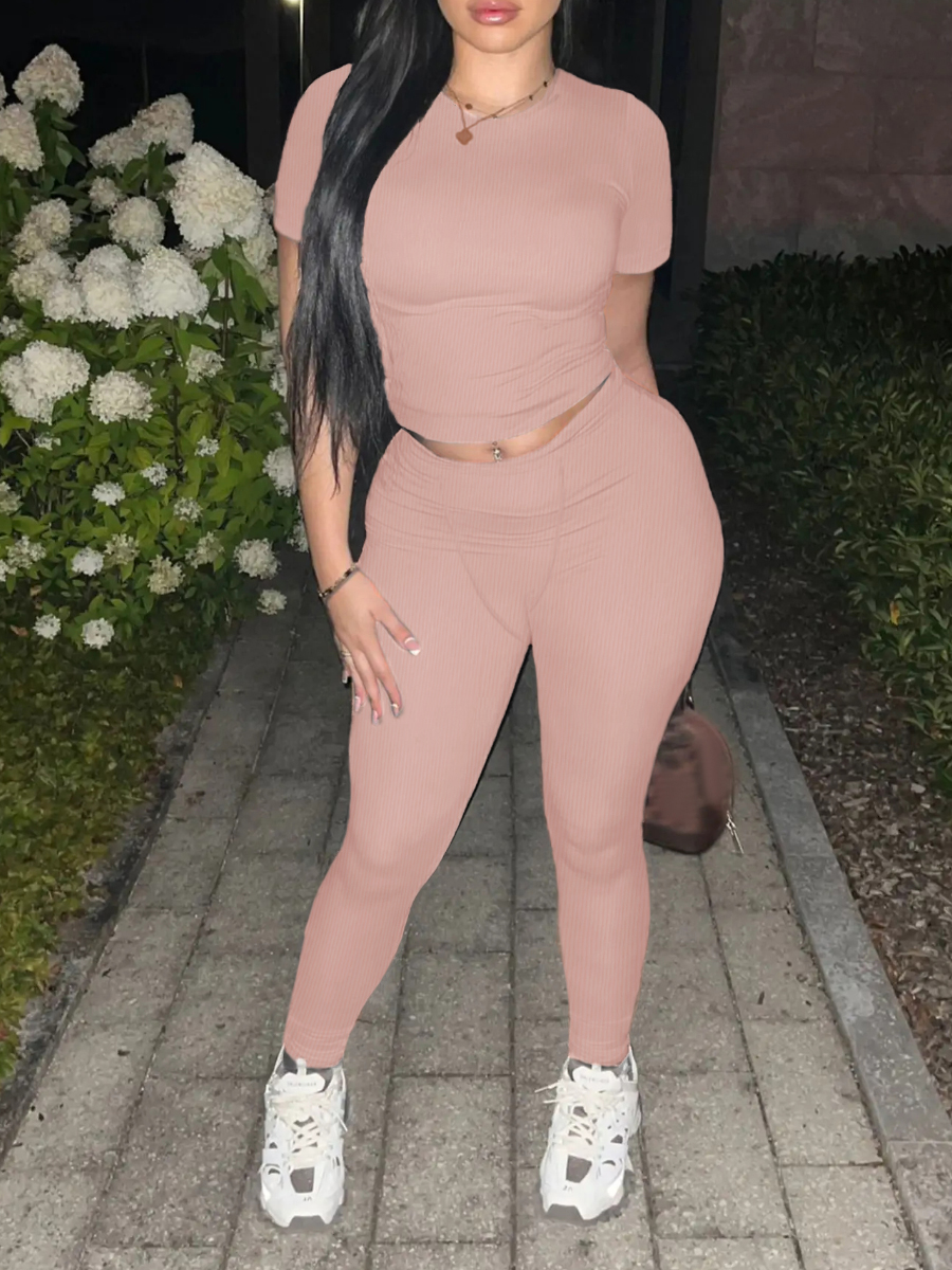 Dusty Pink Slim Fit Two-Piece Pants Set