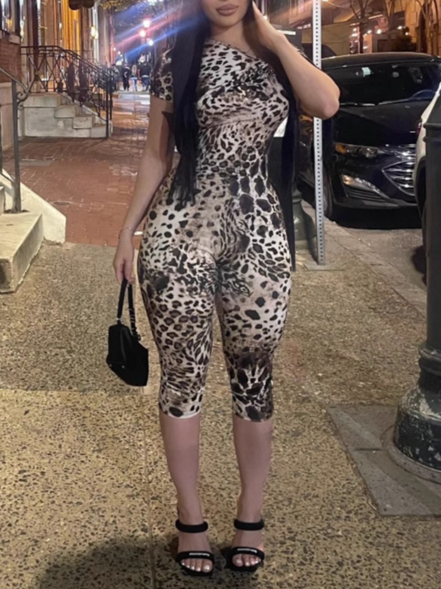 One-Shoulder Leopard Bodycon Jumpsuit