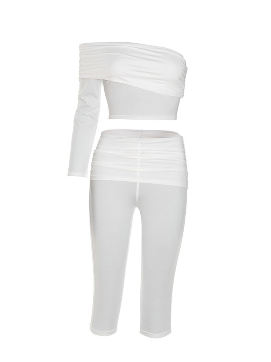 White Fold Detail One Sleeve Capri Two-Piece Set