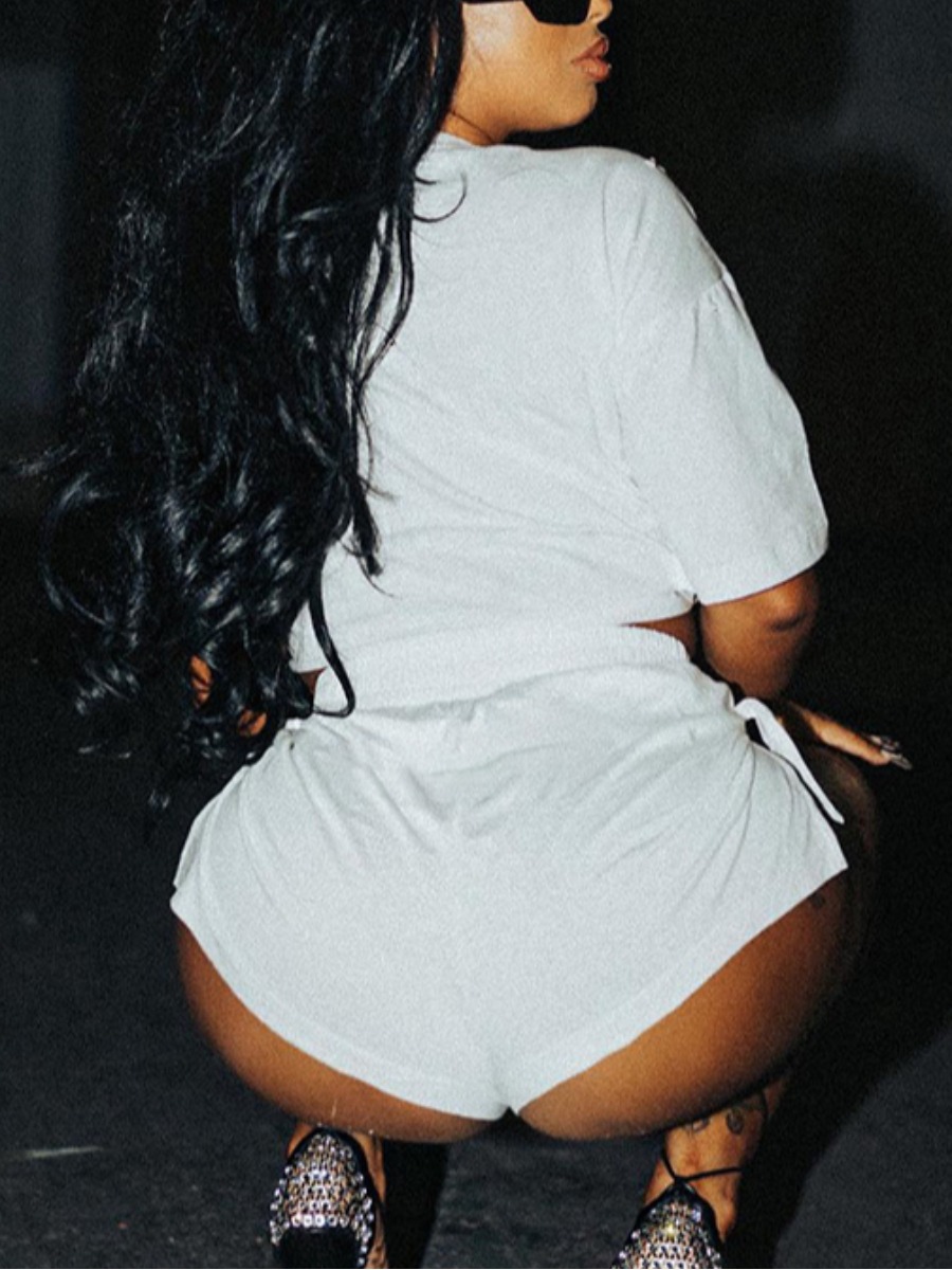 White Tie-Up Design Two Piece Shorts Set